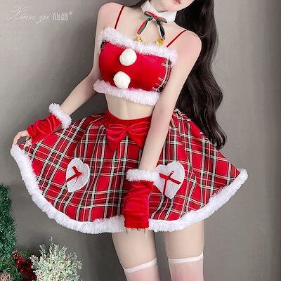 レディース ツーピーススーツ サンタコスプレ セクシー パーティー 新年 パフォーマンスコスチューム 韓国ファッション クリスマス