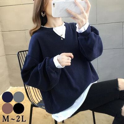 サイトスリット 切り替え トレーナー スウェット コットン パーカー ロゴ トップス レディース 長袖 体型カバー ゆったり オーバーサイズ レディース 無地 春 秋 M L 2L 3L | DOKO-ME