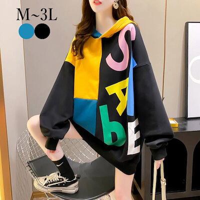 パーカー レディース トレーナー スウエット ロゴ プリント オーバーサイズ カジュアル ビッグシルエット 大きめ 長袖 ゆったり 着痩せ 薄手 春秋 M L 2L 3L