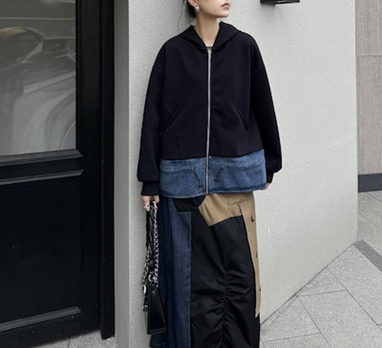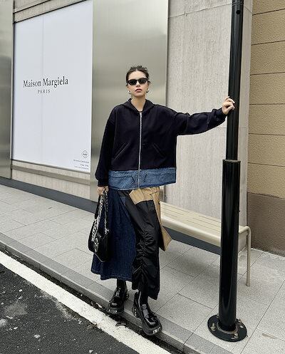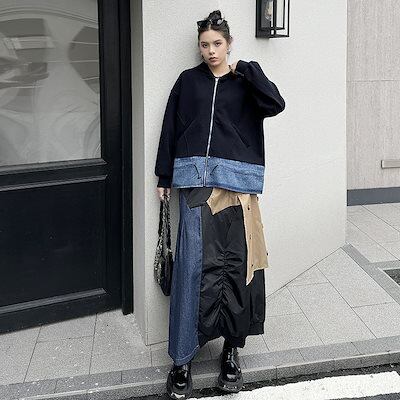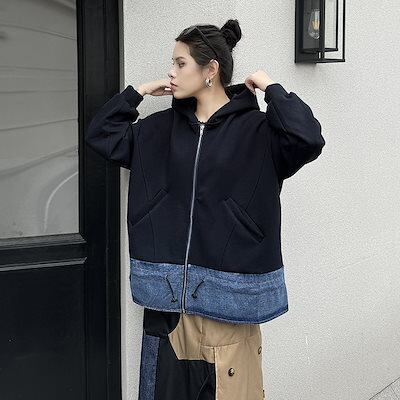 【J.Fashion】 2024秋新品 デニムドッキング ファスナー パーカー スウェット トレーナー レディース ジャケット アウター メガ割