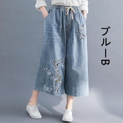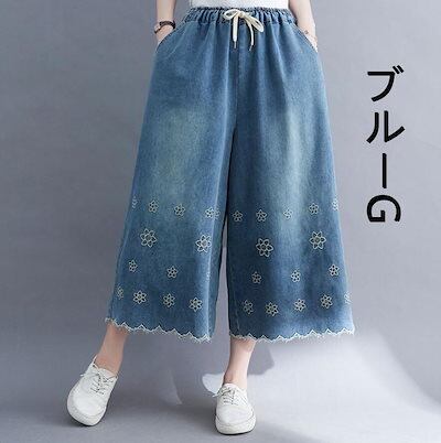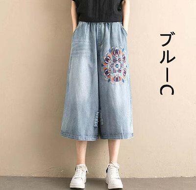 パンツ レディース ワイドパンツ スカーチョ デニム 刺? バギーパンツ ガウチョパンツ フレアパンツ イージーパンツ 体型カバー 春 夏 秋 ロング レディース ボトムス ワイド ゆったり カジュア | DOKO-ME