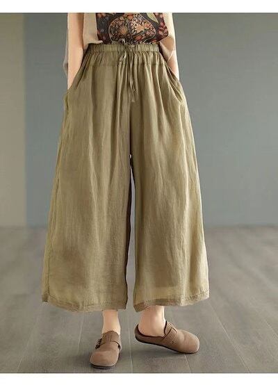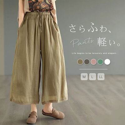 リラックスワイドパンツ イージーパンツ レディース きれいめ スカーチョ スカンツ ガウチョパンツ 無地 フレアパンツ 軽量 旅行 涼しい ズボン ゆったり 体形カバー 大きいサイズ 楽ちん ウエスト | DOKO-ME