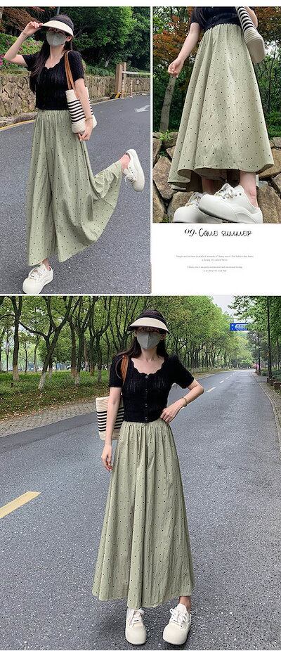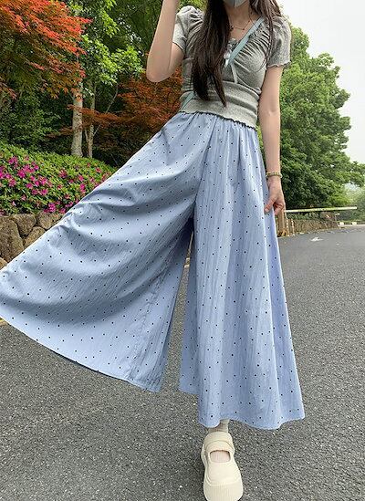 ワイドパンツ ドット柄 レディース 夏 Aライン イージーパンツ 涼しい パンツ 水玉 フレアパンツ ウエストゴム ロングパンツ ズボン ボトムス 大きいサイズ ゆったり 体型カバー 着痩せ カジュア | DOKO-ME