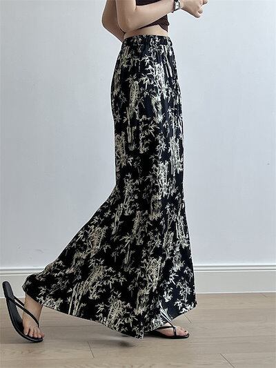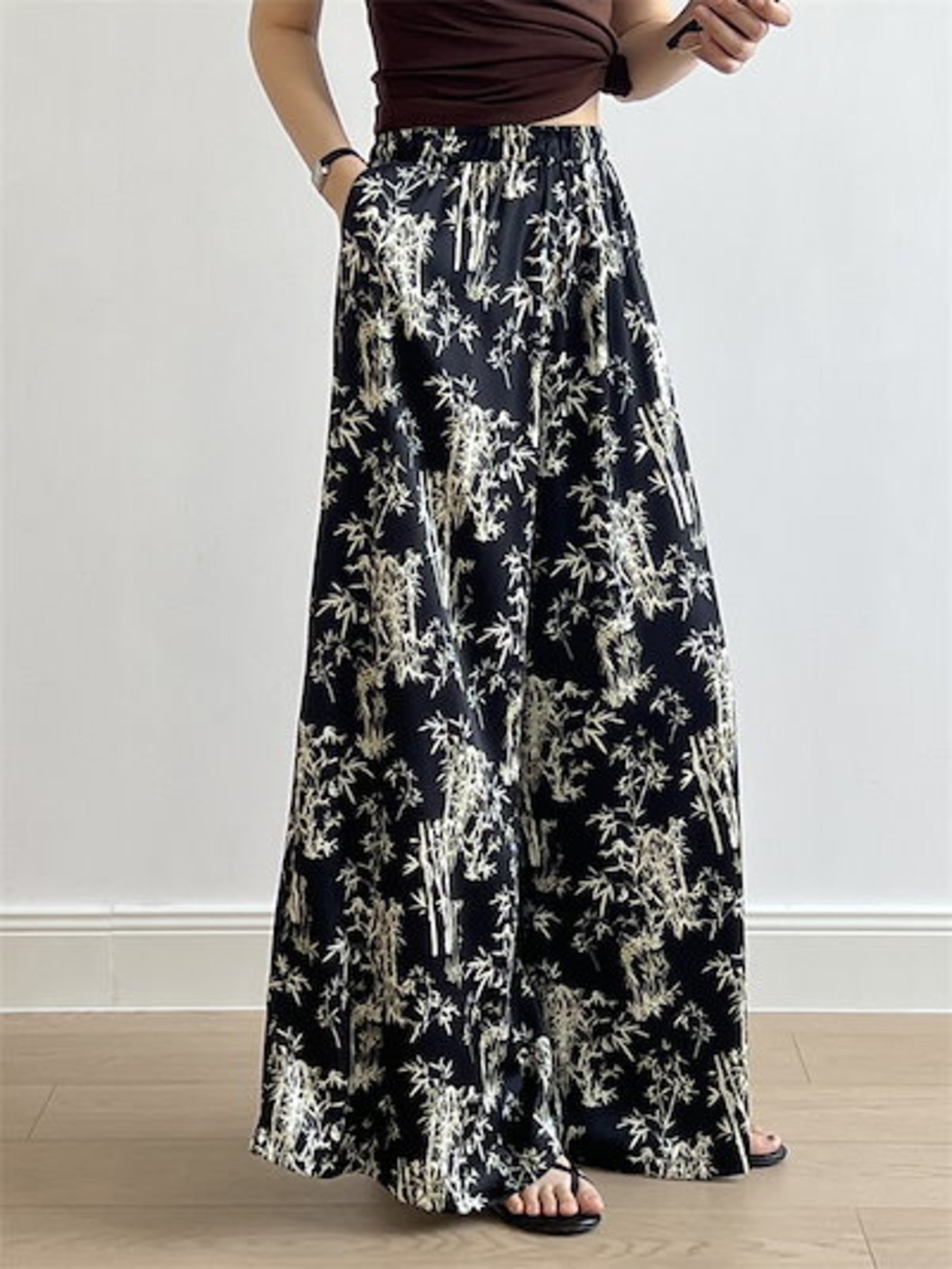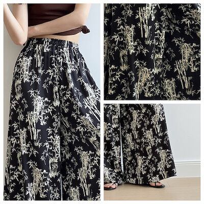ワイドパンツ ひんやり 竹柄パンツ レディース 夏 フレアパンツ 涼しい ガウチョパンツ ロングパンツ リゾート 花柄 バギーパンツ 大きいサイズ ゆったり シフォン リラックス ビーチ 海 爽やか | DOKO-ME