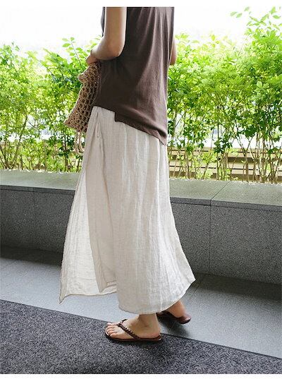 綿麻ワイドパンツ ン スカート レディース ガウチョパンツ フレアパンツ スカート見えるパンツ 綿麻風 ウエストゴム バギーパンツ 大きいサイズ ゆったり リラックス ビーチ 海 爽やか ふん | DOKO-ME