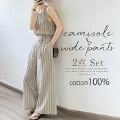セットアップ レディース カジュアル 夏 2点セット 薄手 綿 上下セット キャミソール ワイドパンツ イージー フレアパンツ 涼しい カジュアル ナチュラル 大きいサイズ ゆったり 体型カバー ふん | DOKO-ME