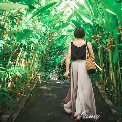 ワイドパンツ レディース スカーチョ シフォン ワイドパンツ フレアパンツ ガウチョパンツ マキシ丈 ロング ワイド ゆったり 楽ちん きれいめ 春 夏 シルク綿麻 大きいサイズ ウエストゴム ハイウ | DOKO-ME