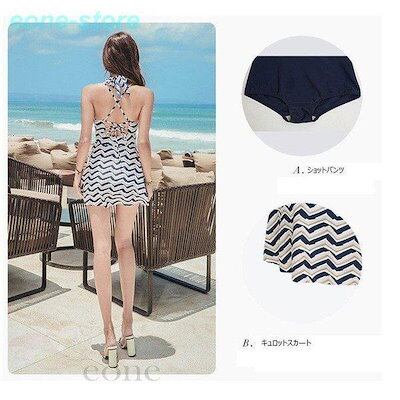 水着レディース 体型カバー 水着 ワンピース型 パンツサロペット水着 ホルターネック フレア水着 韓国風 大きい可愛い スイムウェア ママ水着