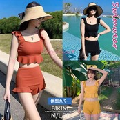 ビキニ水着レディース夏ビキニ2点セット水着体型カバー韓国風ハイウエスト黒フレアショットパンツ水着小胸バンドゥビキニセパレート40セクシー