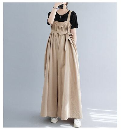 サロペット ワイドパンツ レディース オールインワン ロングパンツ ガウチョパンツ ジャンパー 大きいサイズ ゆったり ポケット フレアパンツ バギーパンツ 春夏秋 体型カバー 美脚 大人 シンブル | DOKO-ME
