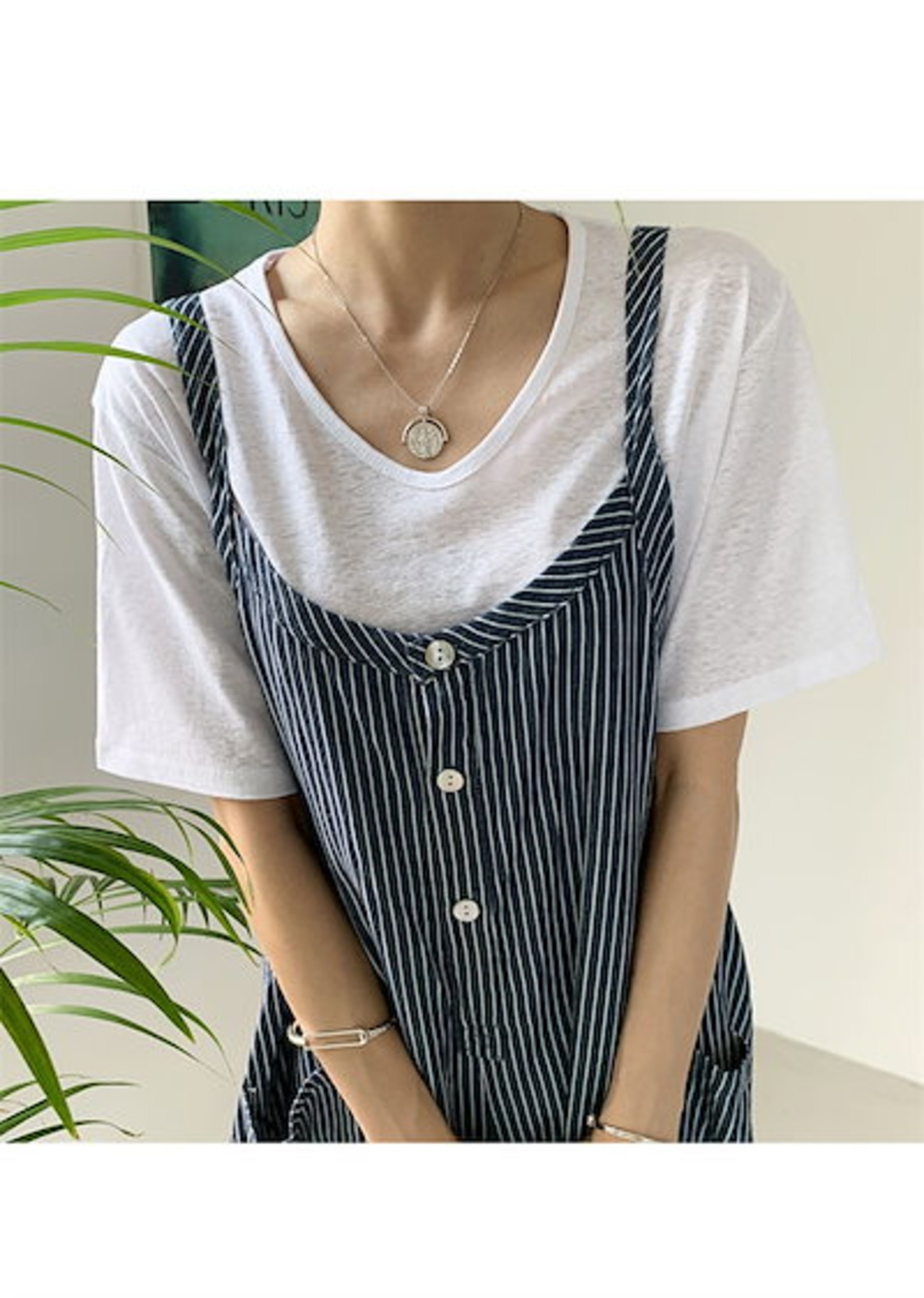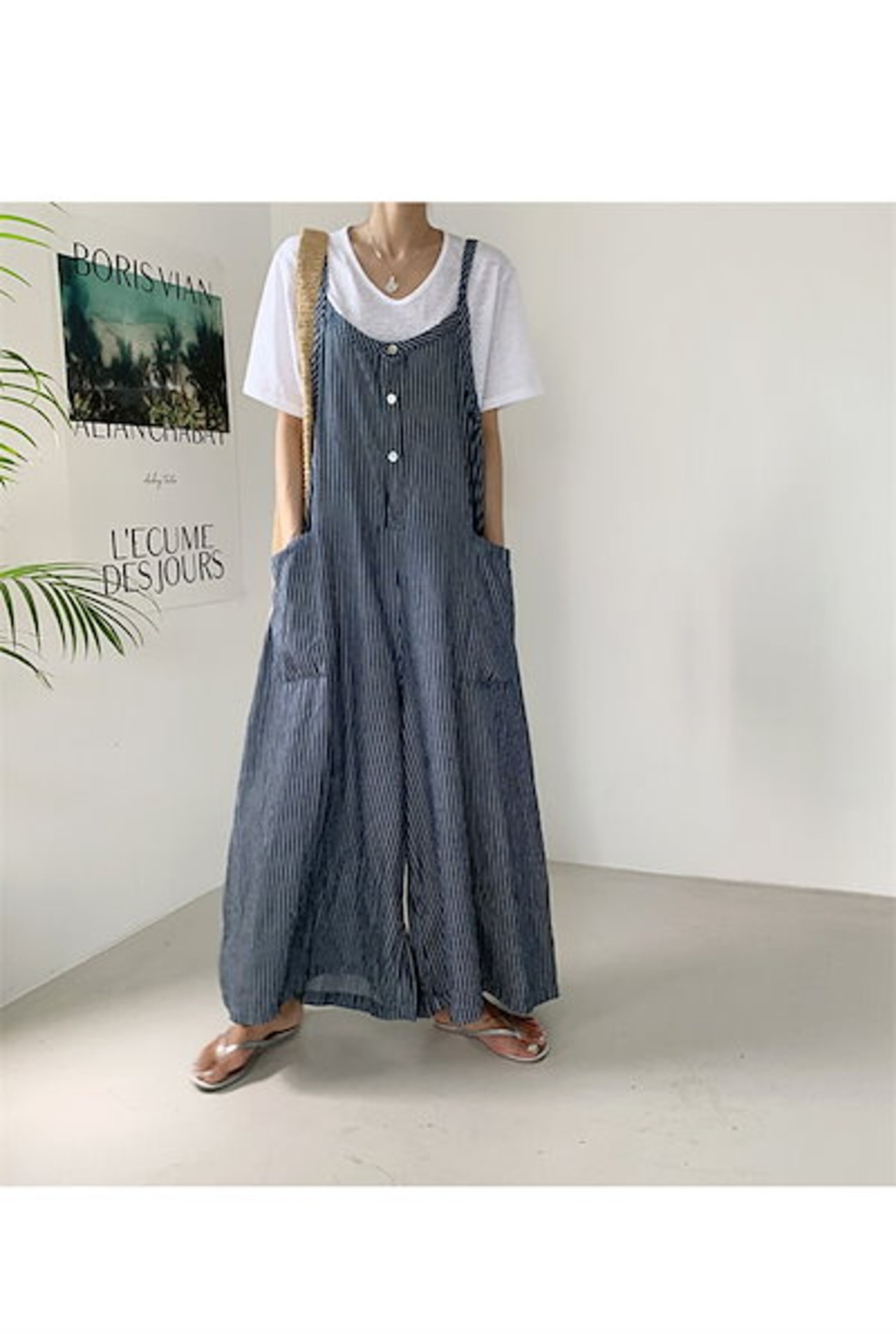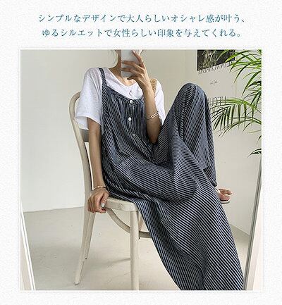 オールインワン サロペット ロングパンツ レディース ワイドパンツ ジャンパー ストライプ チェック ポケット フレア レディース 春夏秋 ゆったり 体型カバー 着?せ 大人 シンブル カジュアル | DOKO-ME