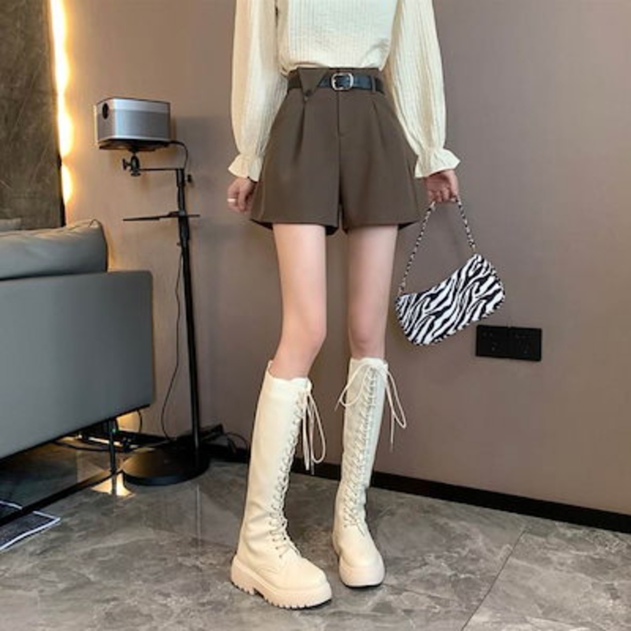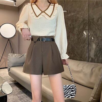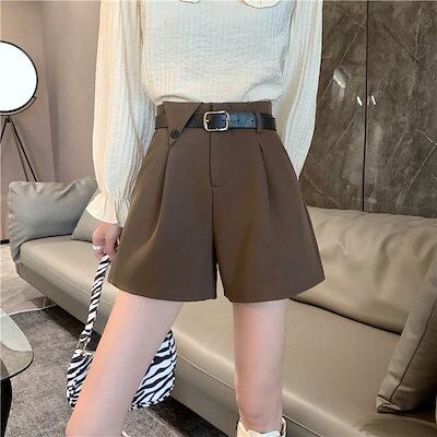 ショートパンツボトムスレディース個性的パンツフレアウエストマークタックショート丈ハイウエスト茶色黒SMLXL2XL3XL4XL大きいサイズ大人可愛いきれいめ上品エレガントフォーマルガーリー | DOKO-ME