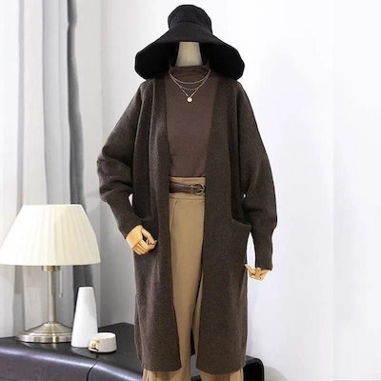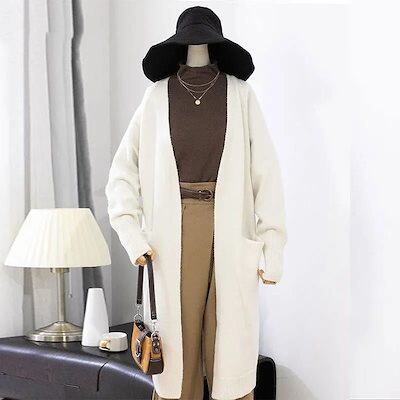 日系セーターカーディガンレディース 春秋 カジュアル アウター セミロング ニットコート 体型カバー