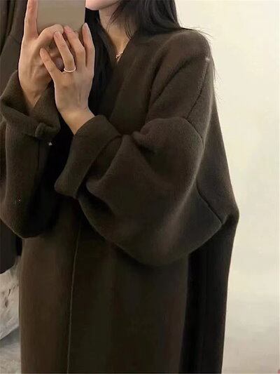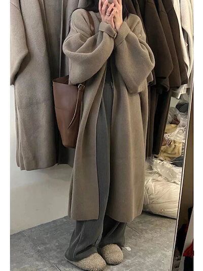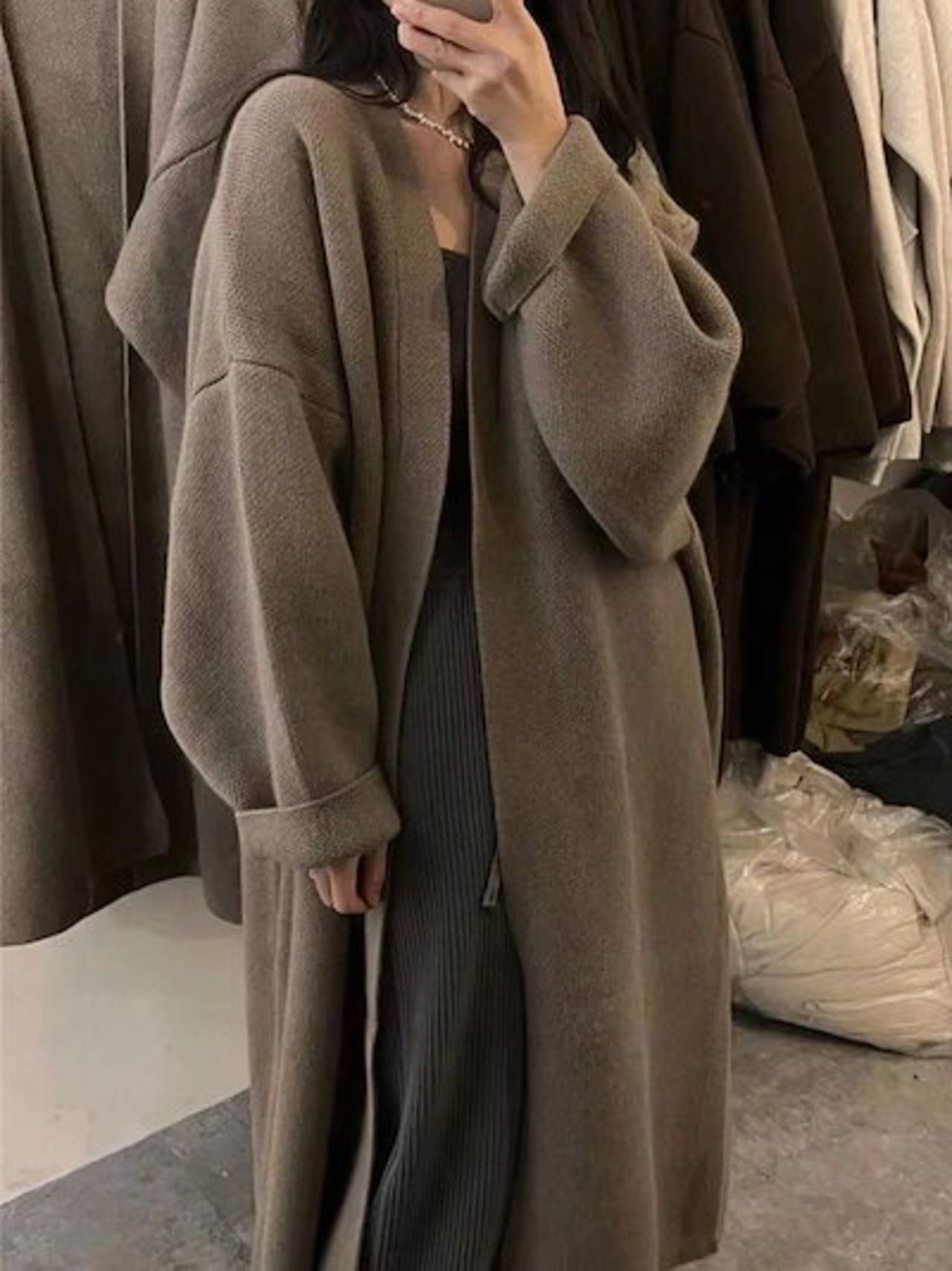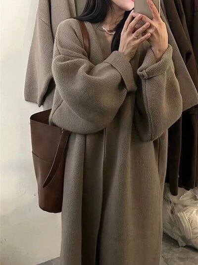 春秋 ロング丈 ニーカーディガン レディースファッション ロングコート ゆったり 体型カバーニット コート