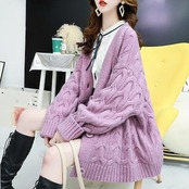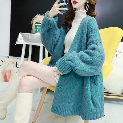 ツイスト 厚手 セーター レディース ゆったり セミロング ニットカーディガン 秋冬新作 怠惰風 ニットアウター