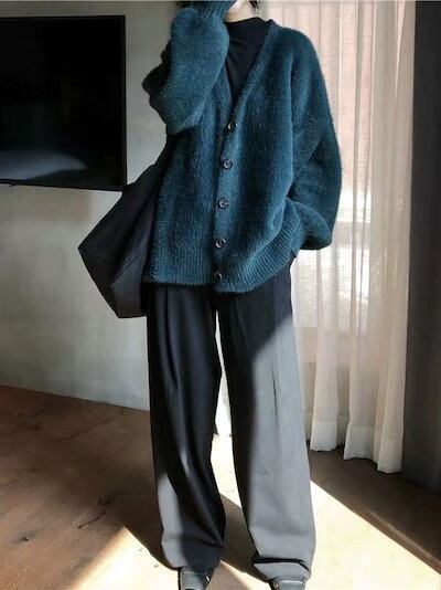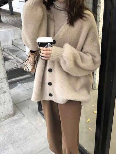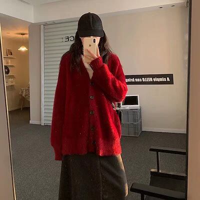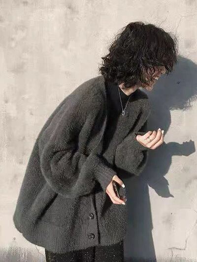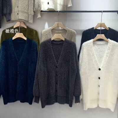 秋冬 ニットカーディガン ニット セーター レディースファッション ふんわり モテ質感 モヘアタッチ トップス トップス 長袖 厚手 アウターカーディガン