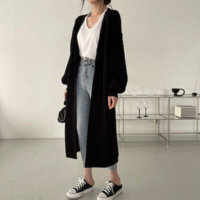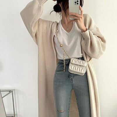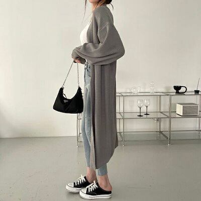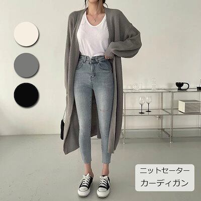 ニット カーディガン 女性 ニットアウター ロング丈 コート レディース 大人 長袖 セーター お母さん ママ 韓国 ファッション 春秋 ゆったり カジュアル おしゃれ 体型カバー | DOKO-ME