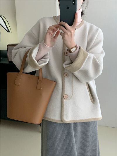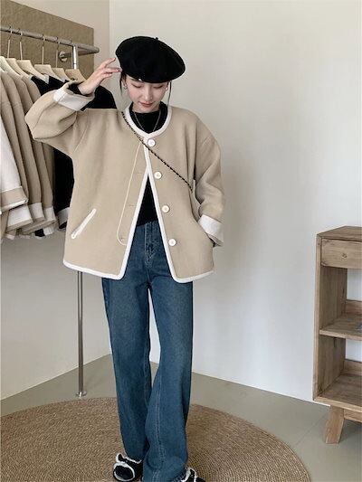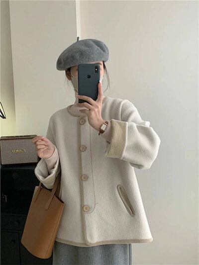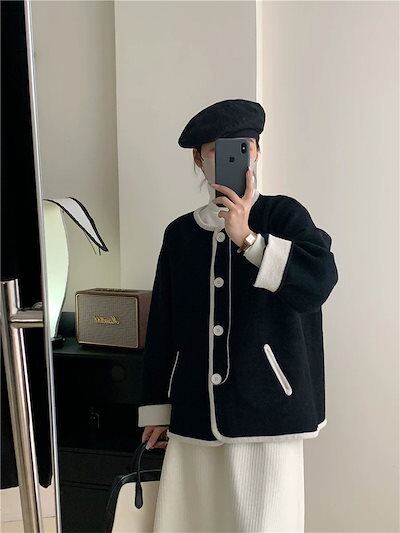 ニット カーディガン カーディガン レディース ニット シングル 長袖 セーター 羽織り コート シンプル 大きいサイズ ゆったり ふわふわ もこもこ 配色 長袖 アウター レトロ カジュアル 防寒 | DOKO-ME