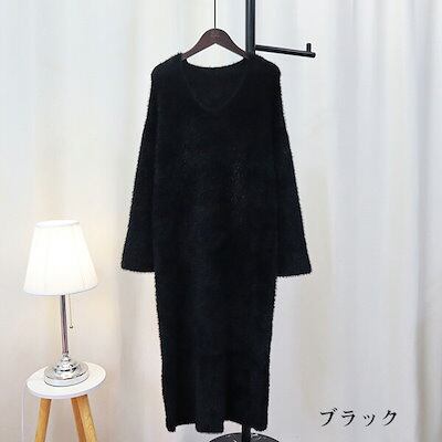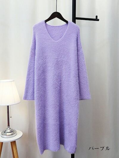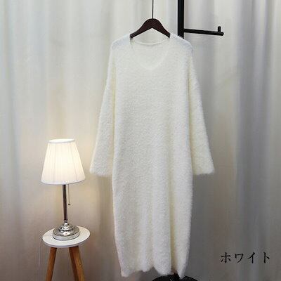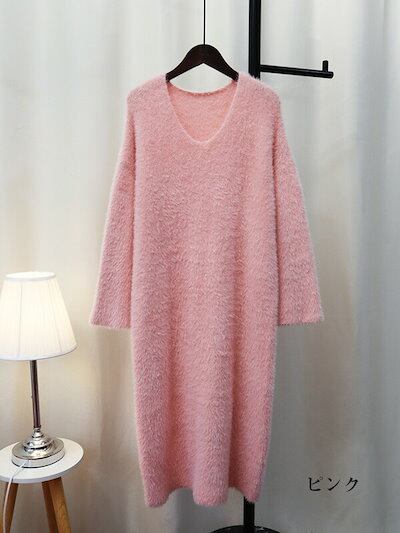ニット セーター レディース ファーニット ファー ニットウェア モコモコ ふわふわ トップス ロング丈 セーター プルオーバー 長袖 vネック ゆったり リブニット 柔らかい セーター アウター 体 | DOKO-ME