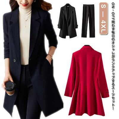 フォーマル上下セット 上品 ロングジャケット スーツ レディース セットアップ ロング丈 春秋 かっこいい スラックス 大人 女性 パンツスーツ フォーマルスーツ 秋冬 ロングコート ママスーツ ビジ | DOKO-ME