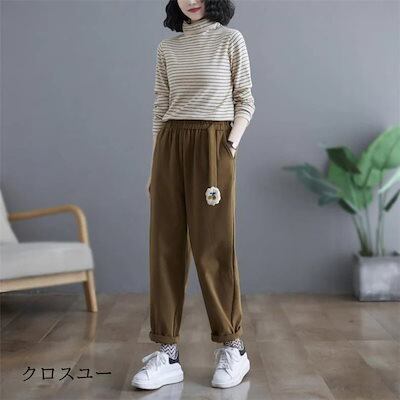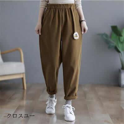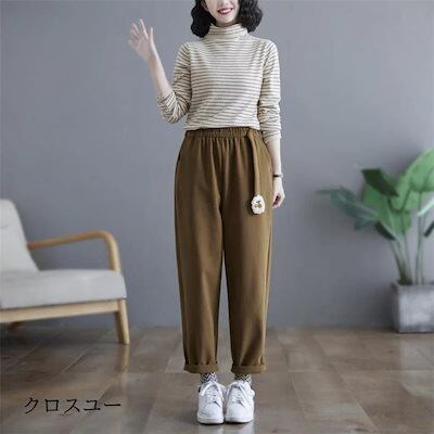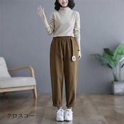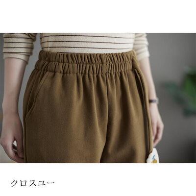 テーパードパンツ 裏起毛 ボトムス ズボン レディース ポケット付き 無地 ウエストゴム ハイウェスト 落ち着いた印象に 脚長効果もgood