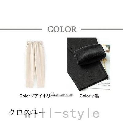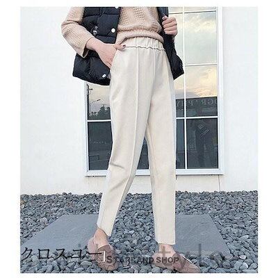 パンツレディーステーパードパンツウエストゴム裏起毛無地秋冬春体型カバー