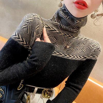 秋 冬 ファッションニット トップス レディース ハイネック ベーシックニット 新作 セーター アンダーウェア 20代 30代 着痩せ セーター 韓国