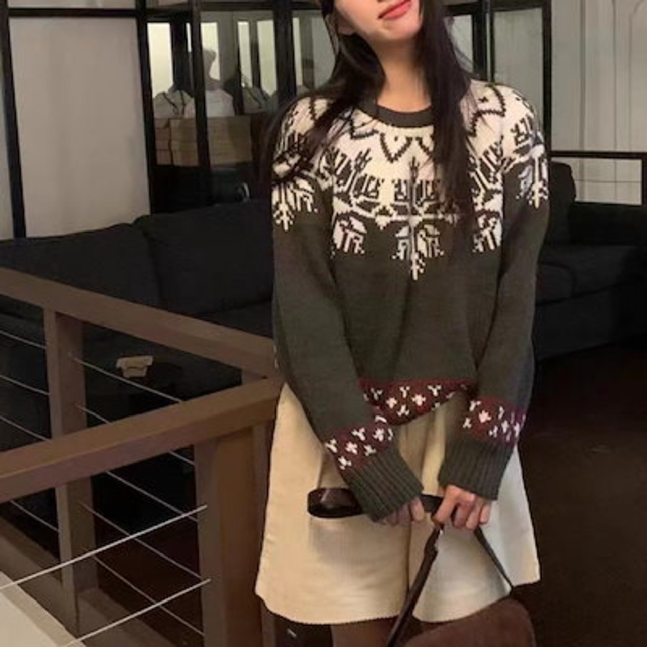 秋 冬 レディースファッション ベーシックニット ジャカードジャンパーの怠惰な風のラウンドネック汎用性の高い 女性の新しいレトロクリスマス シニア感覚 ニットトップス ニットセーター ニット長袖 | DOKO-ME