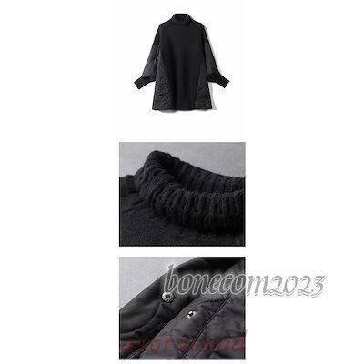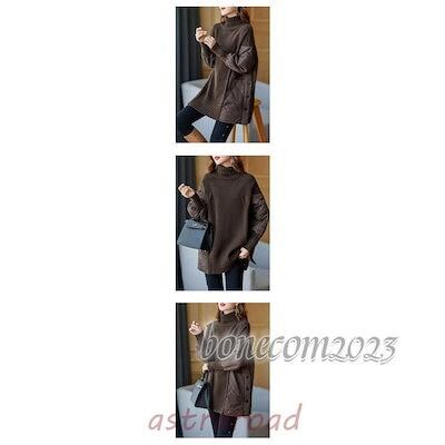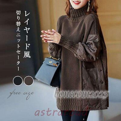 ニット レディース トップス リブニット 秋 長袖 厚手 レイヤード 切り替え 体型カバー セーター チュニック ドッキングニット ハイネック ゆったり 大きいサ 冬