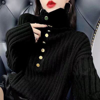 秋冬新作 レトロ タートルネックセーター おしゃれ スリミング ニットインナー レディース カジュアル 長袖ニット トップス プルオーバー