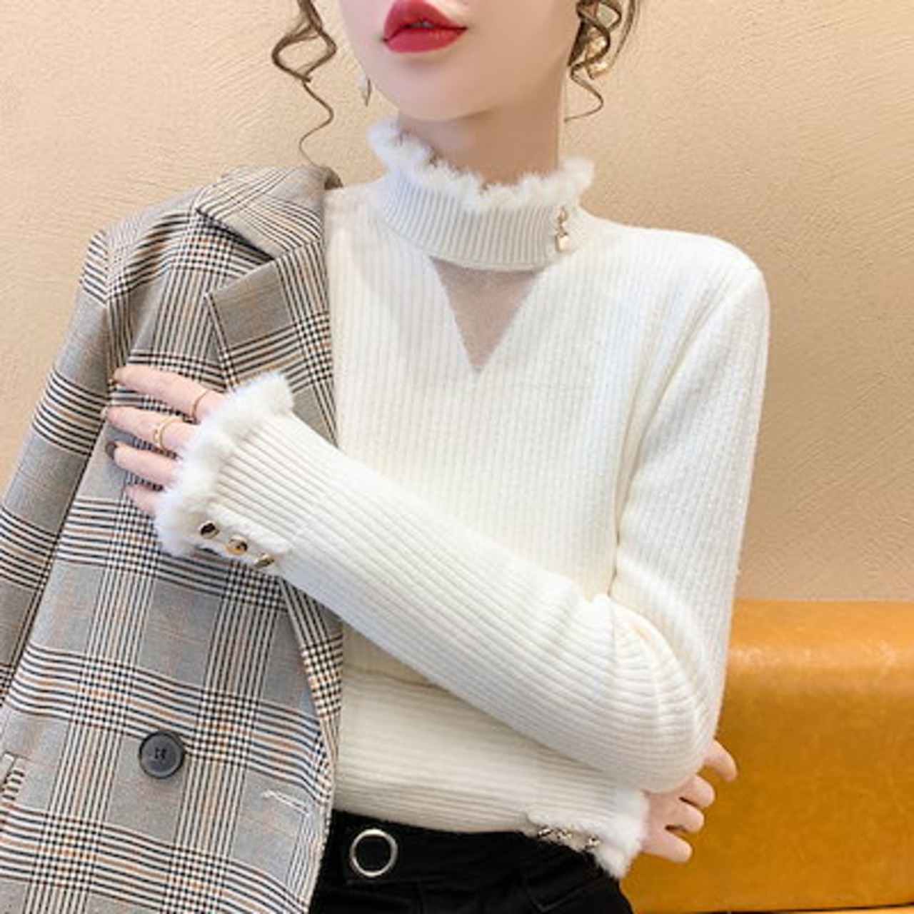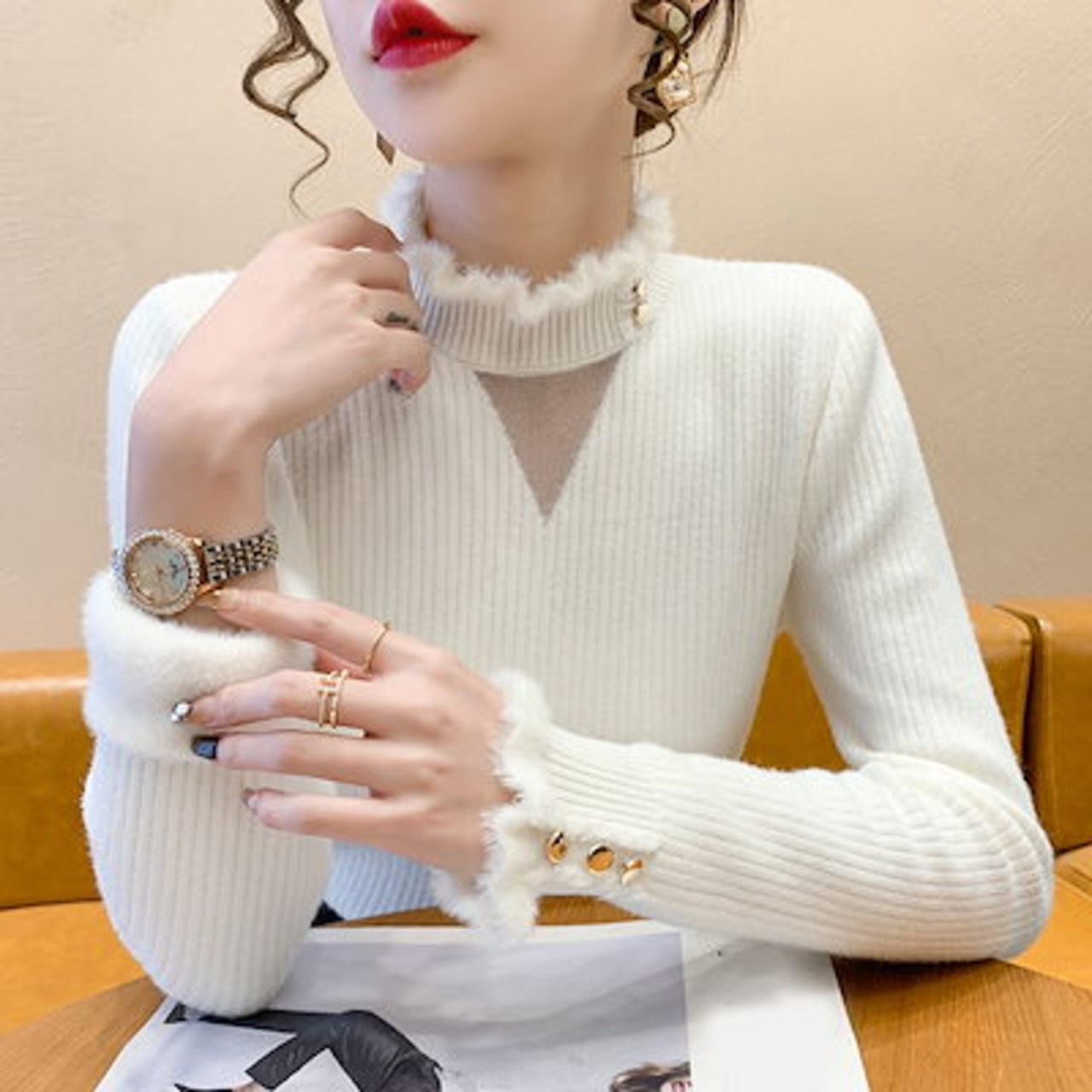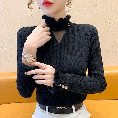 秋冬新作 セーター レディースファッション 裏起毛 インナー トップス 厚手 保温 プルオーバー ハイネック 長袖ニット