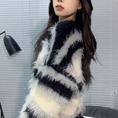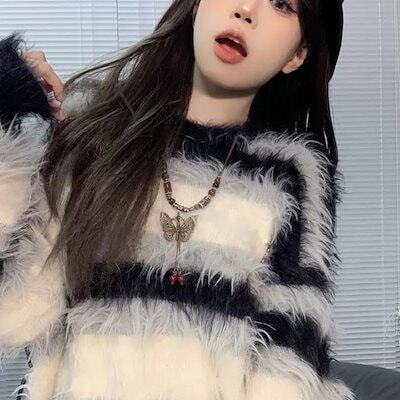 レトロ ボーダー セーター 秋冬新作 レディース ゆったり カジュアル 長袖ニット インナー プルオーバー