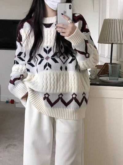 秋冬 保温 セーター プルオーバー レディース ラウンドネック 長袖ニット カジュアル 厚手 ニットトップス インナー