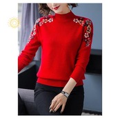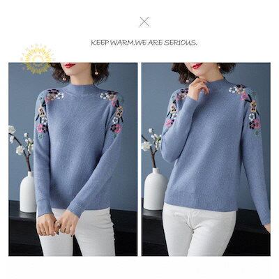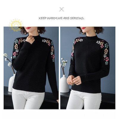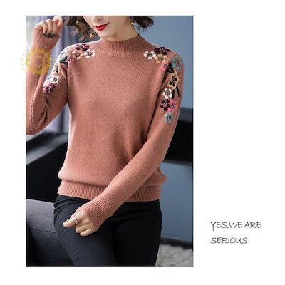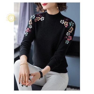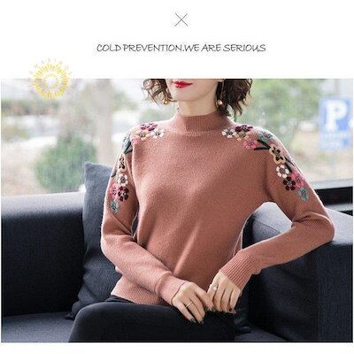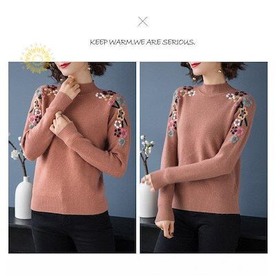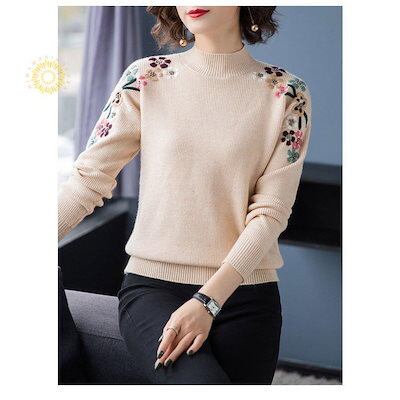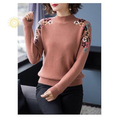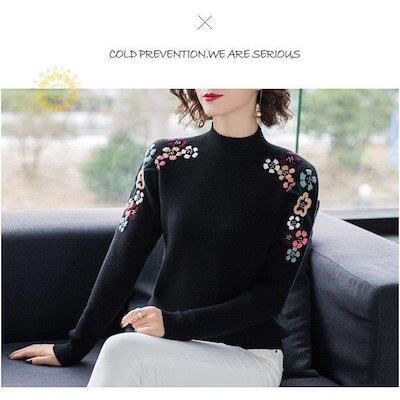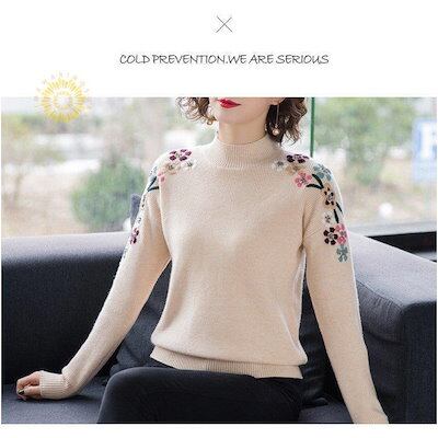 【beifengzh 0 ng】新作ニット セーター 長袖 ショートセーター トップス プルオーバー レディース カットソー ソフト プチハイネック 花柄 フラワー カジュアル きれいめ 着痩せ 新作 | DOKO-ME