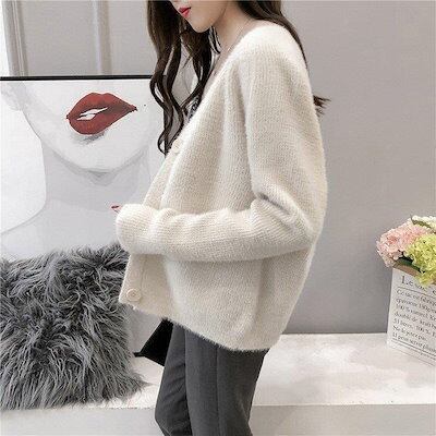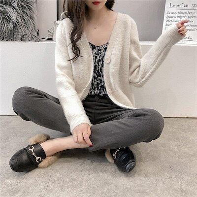 【beifengzh 0 ng】新作ニットカーディガン レディース 秋冬 長袖 Sショット丈カーデ モヘアコーディガン ニットトップス 無地 ニットアウター セーター 大人 オシャレ3色 | DOKO-ME