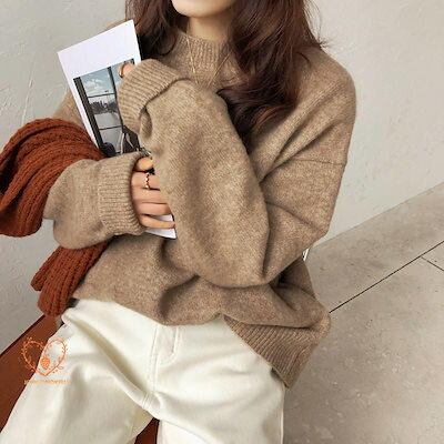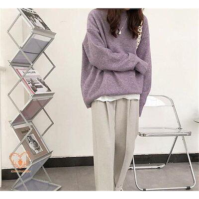 【beifengzh 0 ng】新作ニットセーター レディース ニット 長袖 秋冬 リブ ハイネック Tシャツ インナー セーター トップス ゆったり 韓国風 体型カバー きれいめ | DOKO-ME