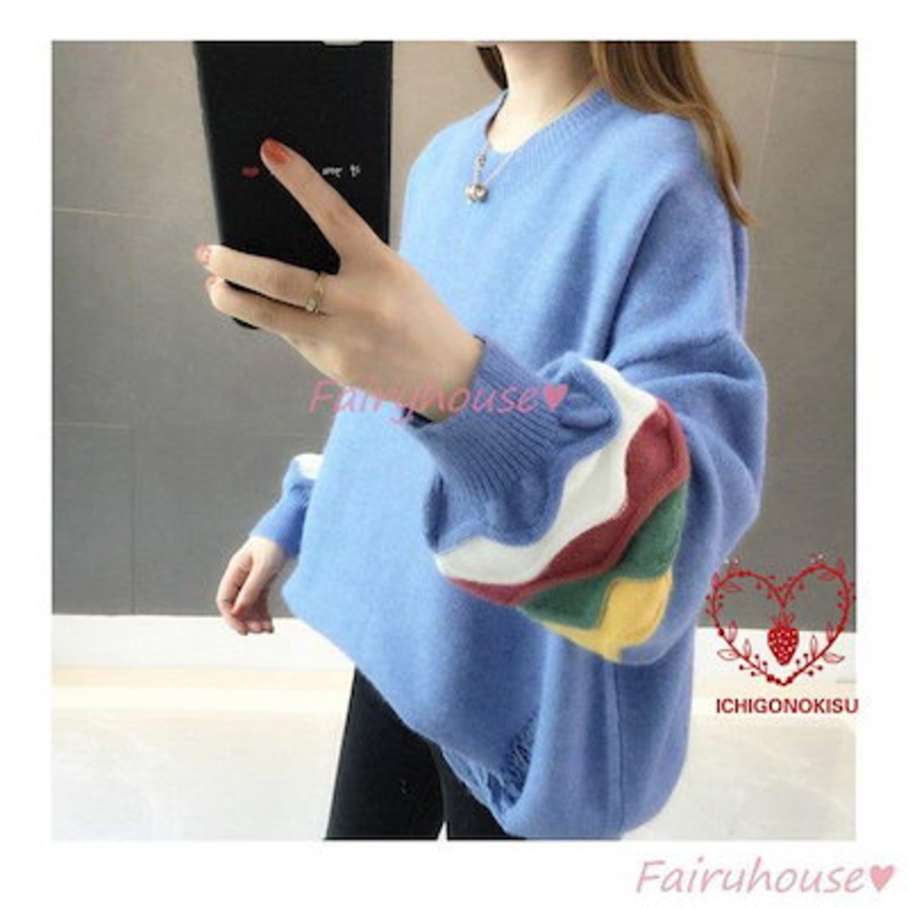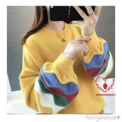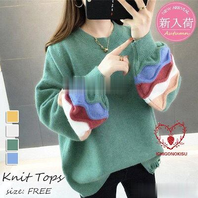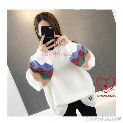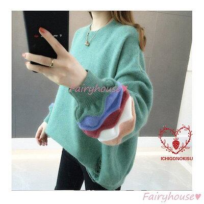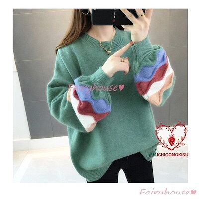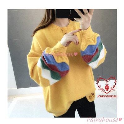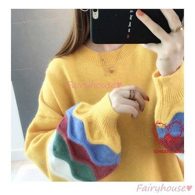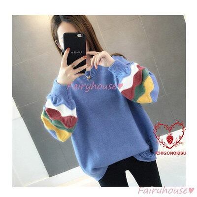 【beifengzh 0 ng】新作ニットトップス レディース 秋服 40代 長袖セーター パフスリーブ 配色 ショット丈セーター ゆったりプルオーバー オシャレ韓国風 大人ニットインナー 50代 | DOKO-ME