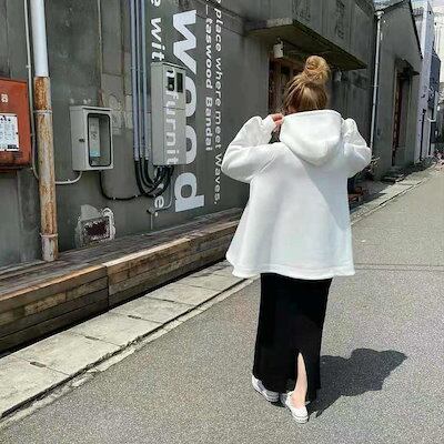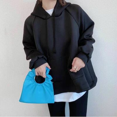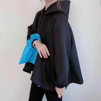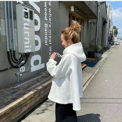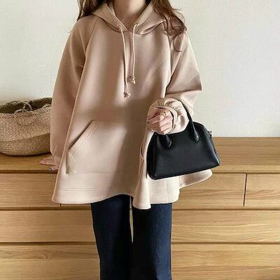 レディース トップス フーディー ドロストデザインフード ポンチョ風 プルオーバー パーカースウェットプルパーカー マフポケット 無地 長袖 ゆったり カジュアル シンプル 大人可愛い 学 | DOKO-ME