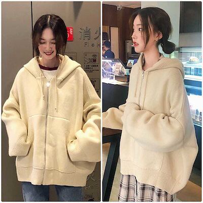 レディース ニット パーカー ジップアップ セーター 長袖 あったか ゆったり オーバーサイズ トップス 秋 冬 カジュアル 大人 可愛い フェミニン おしゃれ お出かけ オフィス デイリー ホワ | DOKO-ME