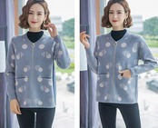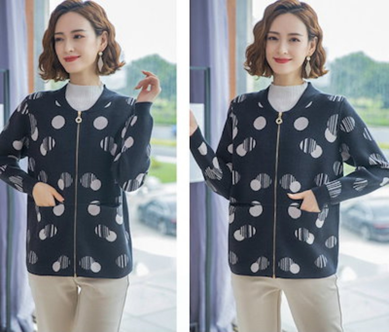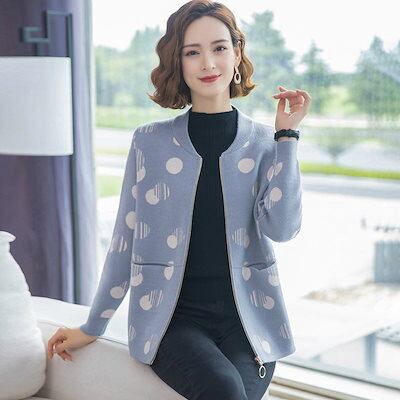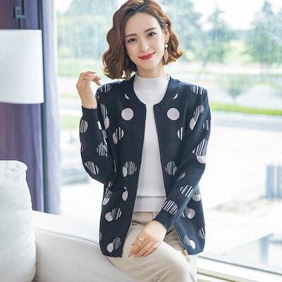 レディース 婦人服 カーディガン ジッパーカーディガン バブルドット 水玉 トップス アウター 羽織 長袖 ベースボールカラー リブ袖 大人可愛い ミセス シニア 20代 30代 40代 50代 60 | DOKO-ME