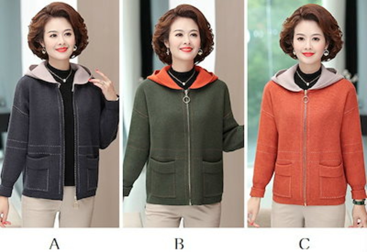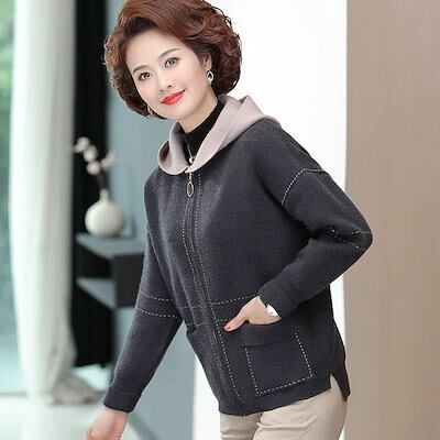 レディース 婦人服 パーカー アウター フード取り外し レイヤード 重ね着風 ランニングステッチ カジュアル パッチポケット リブ袖 シンプル きれいめ 羽織 ミセス シニア 40代 50代 60代 | DOKO-ME