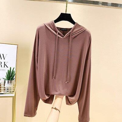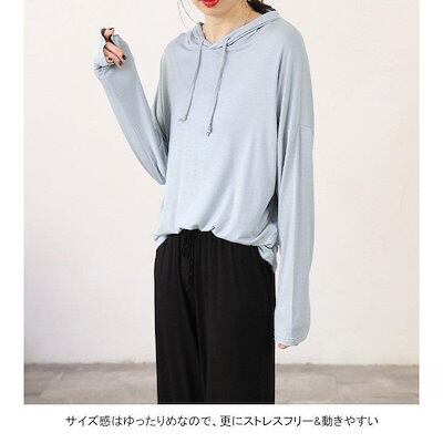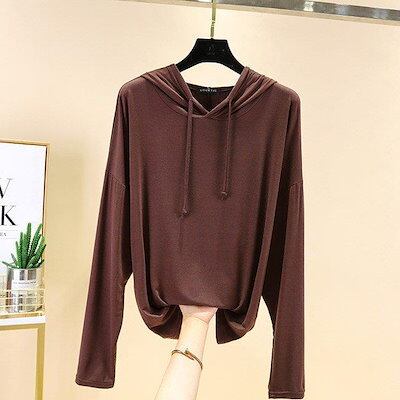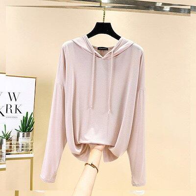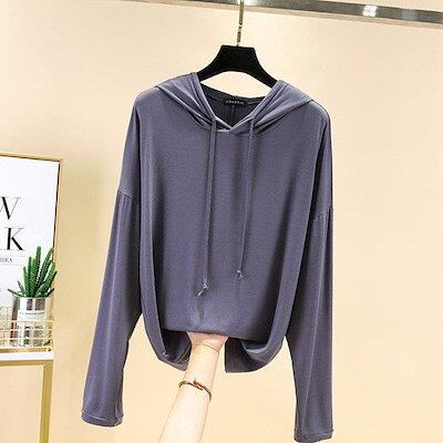 フード付きTシャツ 長袖 レディース パーカー 薄手 春秋 Tシャツ ゆったり カットソー モダール 長袖Tシャツ 柔らかい トップス フード付き カジュアル 着痩せ レディース トップス 春秋 女性 | DOKO-ME