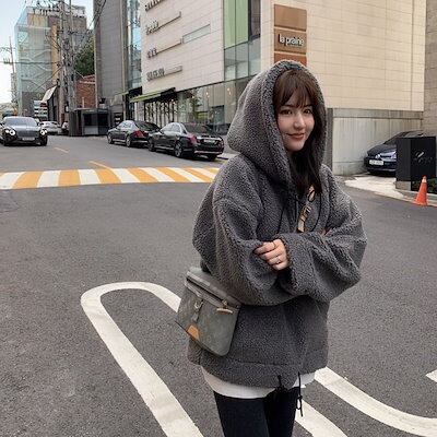 Tシャツカットソー ラムズウール アウター レディース 新作 スウェット裏起毛パーカー 厚手 カップルトップス スウェット
