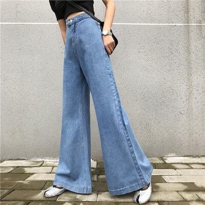 デニムパンツ デニム バギーパンツ レディース 韓国ファッション 脚長効果 ワイドシルエット ロングパンツ
