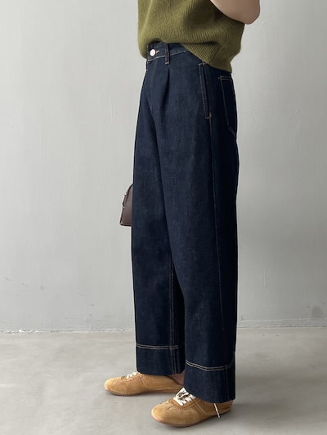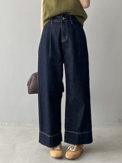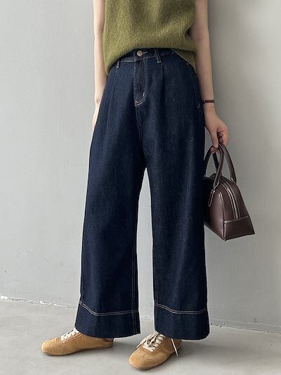 レトロハイウエストワイドデニム2024秋の新作ゆったり垂れ感カジュアルストレートパンツ
