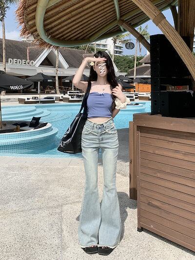 秋冬の新作レディースバリフリンジ馬蹄ジーンズレディースハイウエストスリムマイクロフレアパンツロングパンツ