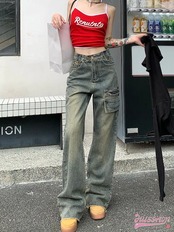 2024春夏パンツ デニム ジーンズ ワイドパンツ デニム ジーンズ ワイド ストレート ハイウエスト 脚長効果 美脚効果 細見え ウォッシュ加工 フリンジ 春 カジュアル 韓国ファッション レディー | DOKO-ME