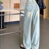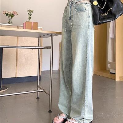 ボトムス レディース ハイウエスト 2023秋 ワイド デニム ジーンズ レトロ 韓国版 デニムボトムス 新作 デザイン 可愛い おしゃれ カジュアル 夏 ゆったり スタイルアップ 美脚 脚長 韓 | DOKO-ME