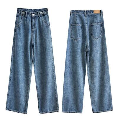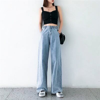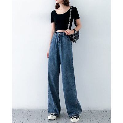 ワイドパンツ レディース ボトムス ハイウエスト ストレッチ ジーンズ カジュアル 大きいサイズ 体型カバー きれいめ ゆったり おしゃれ
