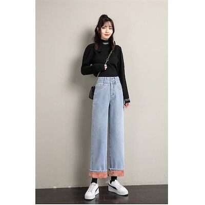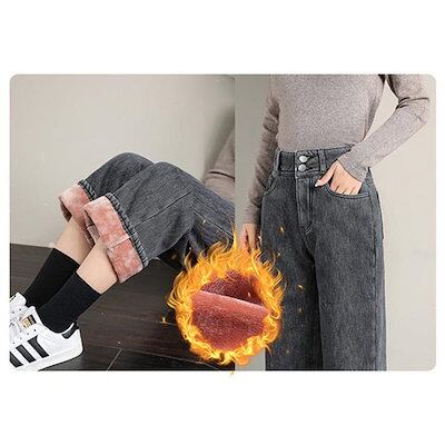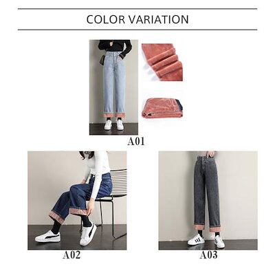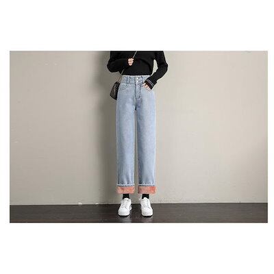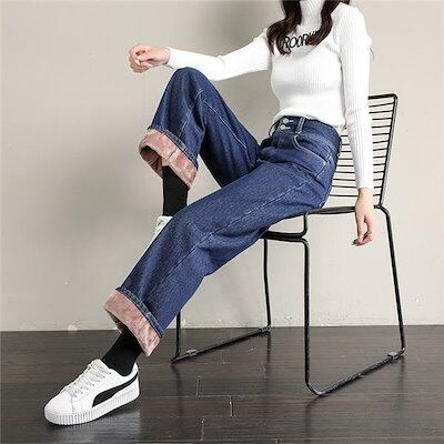 ワイドデニムパンツ レディース 裏ボア 極暖 厚手 暖かい ズボン パンツ 裏起毛パンツ デニムパンツ 暖かい 防風 防寒 あったか 秋冬